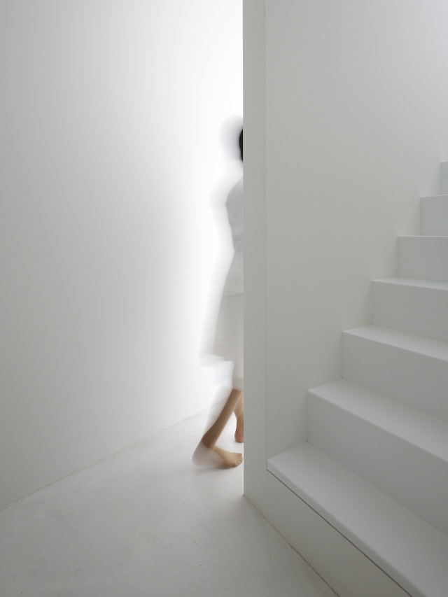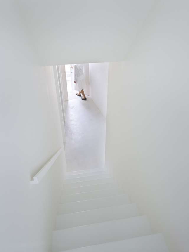 ここでは1軒の住宅を南北2棟に分割して細長いヴォイドをもうけた。ヴォイドは東西方向なので南面採光をとることができ、周辺の空地とつながっているので風がよどまない。各部屋は空地を分断しないよう、位置をずらしたブリッジ状の階段室でつながれる。